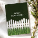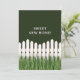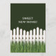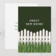 Ny hem tillkännagivande med vit picket staket och gräs.