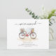 Chic boho-flytta-annonskort med vattenfärgad röd kvinnlig cykel med modern handskrift och svart typografi som du kan anpassa.