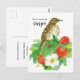 Ett vykort för flytta som dekoreras med en brun torkare och Cherokee ro med några mogna persikor som illustreras med bläck och som är färgade med vattenfärg. Inspinerad av den statliga fågeln och statsblomman i Georgien. Njut av "Peach State"! Du kan redigera texten med dina detaljer.