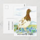 Ett meddelande om flytta på vykort som dekoreras med en Willow Ptarmigan som går i en bugg av vildblommor utan glömska med Alaska tundra och berg med täckt snö i bakgrunden som målats med vattenfärg. Inspinerad av statshönan och statsblomman Alaska. Du kan redigera med dina detaljer på baksidan.