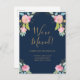 Flytta Announcement Navy Blue Rosa Flowers Vykort