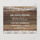 Budgeterat Rustic Farmhouse Wood, String Light and Snöre Vi har Flyttat nya kort för hemmet eller Nya adress kort - innehåller vackra manustypografi och elegant för speciella New Home eller Nya adress firande.