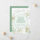 Tillkännagivandekort för flytta av elegant som du kan anpassa med ditt eget meddelande, namn och nytt adress. Utformningen har elegant för handskrift och brans grönt och guld blad.