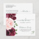 Vattenfärgblommor nytt hem samma kärlek-flytta-vykort med en vacker mörk röd burgundi och rosa-sommarpeony botaniskt bouquet med emerald grey foliage och ett trendig-handskriftsskript för vår.