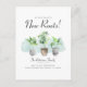 Växtförändringar i adress-anslaget med boho-vattenfärgshus i krukor. Den typografi som används är modern, minimal och enkel att anpassa med dina detaljer genom att klicka på knappen "Anpassa" ovan. Du kan anpassa ditt nya adress meddelandekort mer detaljerat och inkludera ett speciellt meddelande och e-post adress på motsatt sida.
