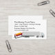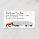 Enkla affärskort för flytta och lagring designade med en bild på två flytta manar som drar en soffa in i en flytta lastbil och en klassisk layout som du kan anpassa onlinen.