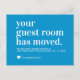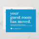 Ditt gästrum har Flyttat Flytta annons med ett modernt skript och typsnitt och ett hjärta. Du kan enkelt ändra färger genom att klicka på personanpassa och sedan klicka för att anpassa ytterligare för att visa färg-väljaren. Kontakta vår butik om du behöver hjälp.
