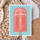 Kyl med de här söta popsicle Temed Party-inbjudningarna för din lilla sommar-födelsedagsfest. Sommardesign i roligt ger en korallpopsikelbild på en turkosblå bakgrund. Anpassa med dina party-detaljer i vit text i stil.