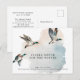 Ankornas flytt söderut tillfälligt vinteradressbyte... Tre gräsänder flyger upp i en vintersk himmel på väg mot sitt nya varma hem för helgerna...söderut, kanske Florida. Hälsningen på framsidan av vykortet i modern typografi är "Flyger söderut för vintern" med din tillfälliga "snöfågel"-adress nedan. Detta vykort kan fungera dubbelt som ett högtidskort och adressändring för familj och vänner som gillar att hålla kontakten under vintermånaderna när du bor "där nere". All text på framsidan och baksidan av kortet kan enkelt revideras på personalisering-mallen.