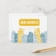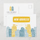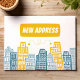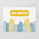 Teckad stil mönster med gula och blå retrohus för ett mycket exklusivt meddelande om ny adress.