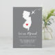 Modern flyttningskungörelse med staten NEW JERSEY med ett rött hjärta & flygplansset på en grå bakgrund. Bakgrundsfärgen kan enkelt ändras genom att klicka på anpassa och sedan klicka för att anpassa ytterligare för att se vår färgväljare. Därifrån kan du också flytta flygplanet & hjärtat! Kontakta vår butik om du behöver hjälp eller behöver en annan stat.