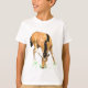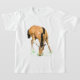 En vit flickas T-shirt med en formgivning på framsidan, från en vattenfärgsmålning av Judy Adamson.