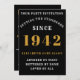 För de som är födda 1942 och firar sin 80-årsdag har vi den perfekta födelsedagsinbjudan. Den svarta bakgrunden med en vit och guld design är enkel och ändå elegant. Anpassa enkelt texten på framsidan och baksidan av denna födelsedagsinbjudan med hjälp av den medföljande mallen. En del av vår standardserie för kort, festartiklar och presenter.