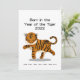 Meddela om din tigerbabys födelse med detta kort med en tiger som har det kinesiska ordet för "Tiger" skrivet på baken och de tidigare åren för detta stjärntecken skrivna undertill för referens. Skriv ditt personliga meddelande eller din rubrik på baksidan av detta kort. Barn födda mellan 1 februari 2022 och 21 januari 2023 kommer att ha tigern som stjärntecken för livet.