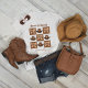 Den här "Born till Dance" linjen dans t-shirt ger liv åt land charm. Med fet design av block-stil parad med elegant-skriptkalligrafi accentueras utformningen av cowboyhattar och unika kronor fyllda med en ko-mönster. De jordbruna och beige tonerna tillför en rustik vibe, perfekt för vilken linjedansentusiast som helst. Den här skjortan är perfekt för danskvällar, avslappnader eller någon som kärlek har westernt med fläkt.