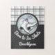 Konstruktionen har ett par isskridskor över en snöflingande vapensköld och en benvit tartan mönster bakgrund. Den här eleganten fungerar vintersportdesign med personlig som ett sött, modernt och unikt pussel.