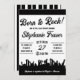 Född i Sten! Den här monokroma inbjudan är perfekt för sten'n'roll themed baby-duschen.