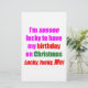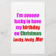Jag har tur som fyller min födelsedag på jul. Tur, tur, jag! Både humoristisk och sarkastisk design för dem som har haft turen att födas på jul.