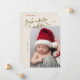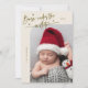 Elegant och modernt födelseattest för jultema med en handskriven text med texten "Född under mistletoe". Det här är ett födelsemärke för julhelgerna! Lägg till foton, födelsestatus och ett meddelande! Bakgrunden är kräm.