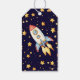 Moderna rymdraket födelsedagspresent taggar för en rolig utomjordisk feststämning för en pojkes födelsedagsfest tagg för presenter. Anpassa namn, datum och information.
