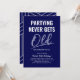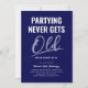 Att fira födelsedag som vuxen blir aldrig gammalt Blå inbjudningar - Gör din födelsedagsfest som vuxen oförglömlig med våra humoristiska och stiliga inbjudningar! Med en snygg blå bakgrund, den kvicka texten "partying never gets old" och en modern textmall där du kan infoga eget namn och ålder är våra roliga födelsedagsinbjudningar för vuxna en riktig höjdare. Perfekta för alla åldersfiranden visar de här korten att skratt verkligen är den bästa medicinen.