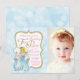 Inbjudan till tekalas med söt blå gnistrande prinsessa på en vacker blå bokeh-bakgrund. Denna vackra rosa, blå och gyllene inbjudan till tekalas kan enkelt anpassas för ditt evenemang genom att helt enkelt lägga till din bild och evenemangsinformation i önskad teckensnittsstil och färg. Detta är en tryckt design utan verklig glitter.