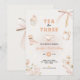 Gör din lilla flickas 3-årsdag riktigt speciell med vår charmiga Tea for Three födelsedagsinbjudan. Perfekt för en fantastisk teparty-födelsedagsfirande, denna redigerbara inbjudan fångar essensen av en blomsterrik tefest, vilket gör den idealisk för en trädgårdsfest för barn. Med en förtjusande design med tekoppar och en tekanna sätter den tonen för din sammankomst. Firade denna födelsedag med stil. Anpassa text, färg, typsnitt som du vill, bara klicka ().