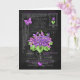 Detta kort med en lyxig look har handritade blommillustrationer av födelsblommebuketter och ljusa födelsepärlor för februaribirthdays, årsdagar och speciella dagar. Svart kritbräda med antika gravyrer av dekorativ hårdvara ger en nostalgisk bakgrund för klasar av blommor, ädelstenar och prydd fjärilar.