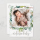 Detta födelsekort med bladfotografi är perfekt för en rustik bebisannons. Designen har en boho-ram med gröna blad och bladgrönsaksliknande botaniska detaljer. Anpassa baksidan med barnets fullständiga namn, födelseuppgifter, föräldrarnas namn och returadress.