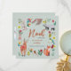 Vi presenterar lilla babypojken annonsering dammig grön med söta skogs skogsdjur, blommor och fåglar. Originalkonst av Caroline Bonne Müller