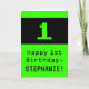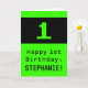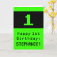 Framsidan av den här roligten och den nonsens födelsematematiska hälsningskortet har en stor grönt för videospel med stil nummer "1". Det innehåller också hälsning:s födelsedagsmeddelande "Lycklig 1:a födelsedag" och ett namn som kan vara personlig. Insidan innehåller ett hälsning-meddelande från personligens födelsedag, eller kan kanske tas bort och lämnas tomt om ett meddelande ska skrivas för hand i stället. Ett nonsens anpassade-födelsedagskort som detta kan vara ett roligt sätt att skicka önskemål till någon som firar sin första födelsedag. [~Z0000430]