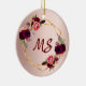En ro-guld tittar metallisk bakgrund. Dekorerad med faux guld geometric ram och vattenfärgade blommor, blommigtar i burgundi, rosa och ro guld. På framsidan: Anpassa och lägg till ett monogram, initialer. Tillbaka: texten "Lycklig 21:a födelsedag" och namn. Burgundisk text. Perfekt som 21:a (eller någon ålder) födelsedagsfestens dekoration, förmån, keepé eller som gåva.