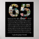 Visa kärlek och beundran med våra 65 skäl att vi Kärlek er fotokollage Poster från Arty Apples. Den här vackra poster är perfekt för att fira en speciell milstolpe-årsdag och har en samling foton och starka skäl till varför din älskade omhuldas.