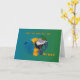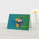 Grönten och den blå makakapan gör ett färgstarkt och humoristiskt födelsedagskort. Du kan gärna ändra den inre versen till kostym efter behov.