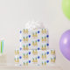 Tvättfluffy gult med party-hattar och blåballong på vitt. Vit bakgrund kan ändras.