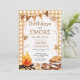 Gingham Fall Birthday är Sur Campfire Birthday Bjud