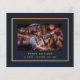 Ett enkelt och elegant tackkort med foto. En mörkblå bakgrund, en falsk guldram. Personifiera och lägg till ditt tackkort.