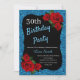 Elegant blå glitter och röd ros födelsedagsfest inbjudan för kvinnor oavsett ålder. Åldern kan ändras för vilken ålder som helst. Text kan ändras till vad som helst för att passa din händelse. Typsnitt, typsnitt färg och text är helt anpassade! Papper form och typ kan anpassas efter din budget och smak!