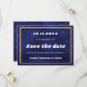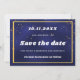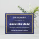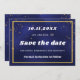 S Spara datumet för en 50:e (eller någon annan ålder) födelsedagsfest. En marin blå färgad bakgrund. Dekorerad med en gyllene ram och konetti. För både honom och henne.