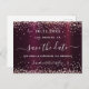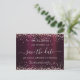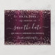 A Spara datumkortet för en 21:a (eller någon annan ålder) födelsedagsfest. En djup, burgundös metallisk tittar bakgrund som dekoreras med ro guld faux glitter, gnistor. Anpassa och lägg till datum och namn/ålder. Texten: Spara datumet skrivs med ett handskript i stil med dekortecken.
