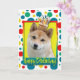Fira en födelsedag med det här visuella Shiba Inu Hund Greeting Card. Med en cupkaka på huvudet är det säkert ett leende och en giggel! BTW, den här designen har flera versioner, med olika bakgrundsversioner av färg. Det finns också en inbjudan till en version från Party.