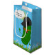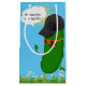 Grönt dill-pickle med orange glasögon och som står i gräs och blommor för att få en äldre födelsedag humor. Text kan ändras.