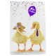 Tvätt fuzzy-gult med en vit bakgrund med en lila grattis på födelsedagen-ballong. Bakgrunden till färg kan ändras. Text kan redigeras.