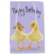 Tvätta gult som dunkar par på en lila polka punkt mönster. Text kan ändras.