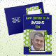 Grattis på födelsedagen till en fantastisk son. Lägg till ett foto och ett meddelande. Blått och grönt. Ändra texten till en annan person i kostym.