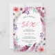 Den rosa och purpurfärgade vattenfärgen befjädrar, och blommor presenterar på denna ursnygga boho6efödelsedagsfest inbjudan med löv som tillbaka mönstras.