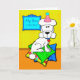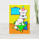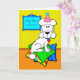 En vit standard pudel har en födelsedagshatt och hjärtklack. En "Min Bro är den bästa" skylten hänger på väggen. Hund är sitta på färgstarka kuddar. Husdjur/djurmatade födelsedag för broderhälsningskort. Pudel, hövlighet för teobroma/OpenClipArt. ©Shoaff Ballanger Studios.