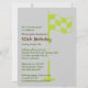 Du kan personifiera alla text på denna themed födelsedagsfest inbjudan för 50th golf. Du kan ändra texten och numrera på bekläda och använda detta för 60th, 70th eller annan födelsedag en 65e. Designen presenterar en grön golfflagga på en grå färgbakgrund, det har en grön grabb körning en golfbil på andra sidan.