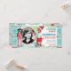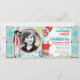 Styltafotgängare, sockervadden, och kortet för födelsedag för ballongkarnevaltema med fotomellanlägget i deppighet, rött, vit och gult med raffle etiketterar på sidan. Perforera precis sidorna för ett lätt river av!