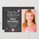 En themed födelsedagsfest inbjudan för gullig vinterunderland för en liten flicka. Att presentera rosa snöflingor och virvlar runt på en svart tavlabakgrund. Personifiera lätt med ditt barns information om foto och om party.